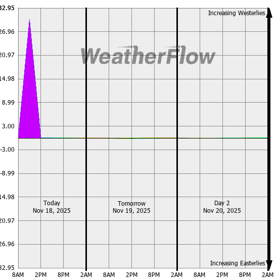Computer forecast models generally can not resolve the topography of the Gorge and hence model predicted winds are often inaccurate. However, models can predict localized air pressure changes with a great deal of accuracy and it's these pressure differences (gradients) that drive the winds through the Gorge. The above "windbow" is a tool that our Meteorologists have developed to provide a powerful quick look of model predicted gradients.