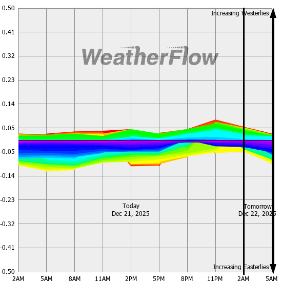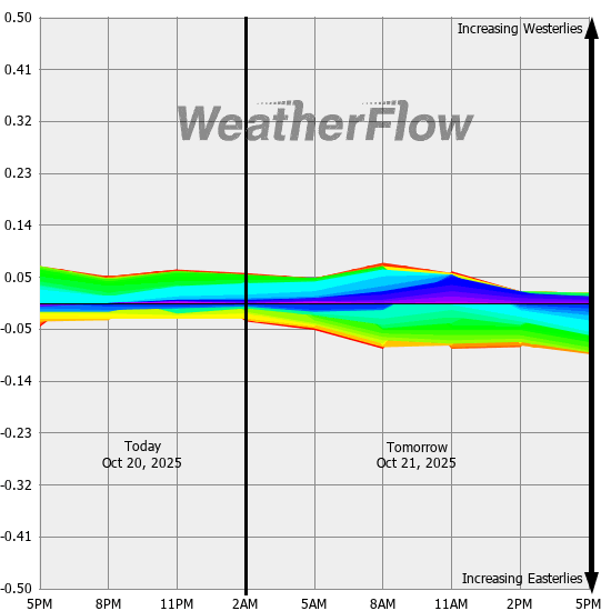 Computer forecast models generally can not resolve the topography of the Gorge and hence model predicted winds are often inaccurate. However, models can predict localized air pressure changes with a great deal of accuracy and it's these pressure differences (gradients) that drive the winds through the Gorge. The above "windbow" is a tool that our Meteorologists have developed to provide a powerful quick look of model predicted gradients.